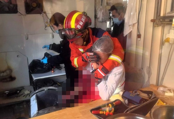 日前,市消防救援支队119批示核心接到报警,南关区丰顺街一店肆内有人操做压面机时手部被夹,环境求助紧急。批示核心敏捷派遣南关大队岳阳街坐。