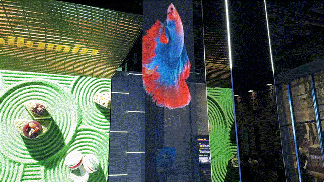 正在功能上,Micro LED手艺,极小的LED晶体尺寸,以小于 50 微米的空间占领,确保了通明结果上实现70%~93%的通透率。实正给消费者以“空间无物”的既视感。同时,极小LED晶体也便于摆设更高的显示像素密度,让全息立体画面更为清晰逼实,将通明显示从保守的大空间、远距离旁不雅使用,带入到近距离、面前旁不雅时代。以至,以此手艺为根本,洲明科技还推出了通明全息一体机、桌面级AI全息交互终端等差同化品类。正在形态上,通明是根本,但要满脚“肆意安拆”还需要轻薄。Udesign SV 全息通明屏每平米分量不外5公斤、厚度不外2毫米,不需要额外的特殊承沉布局,能够肆意“吊挂天花板”、“贴合幕墙”。正在够轻够薄的前提下,其采用特种光学材料和MIP封拆、MIP packaging布局,实现了产物布局强度、产物使用对水电气没有出格需求、对洁净工做也没有额外承担。核能上,Udesign SV 全息通明屏是实正的低温冷屏,贴合玻璃幕墙,不消担忧冷热膨缩对布局平安的影响;其具有7000nits高亮,正在90%以上高透下,仍然能供给色彩明艳、对比明显的立体全新影像,确保画质显示正在优良照明前提和透光率下的超卓沉浸感。Udesign SV 全息通明屏另一个初创性的立异是“支撑铰剪裁剪异形外形”!可弯曲、可裁剪、支撑1000/1200毫米大模组,让异形创意设想、异形空间安拆更为驾轻就熟。做为一款每个像素都需要驱动电流的显示屏,若何实现可裁剪的呢?洲明科技为此设想的AM MiP每个像素点都具备的存储单位,可保留颜色消息,无需持续供电。这种全新、判然不同的像素功能单位布局,连系AI驱动下的智能算法,处理了异形显示驱动节制的题,实现了产物“肆意裁剪”。