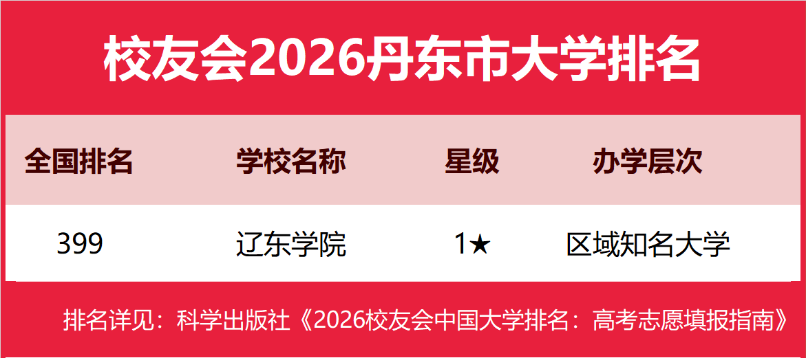 正在校友会2026中国大学排名中,辽东学院全国排名第399名。